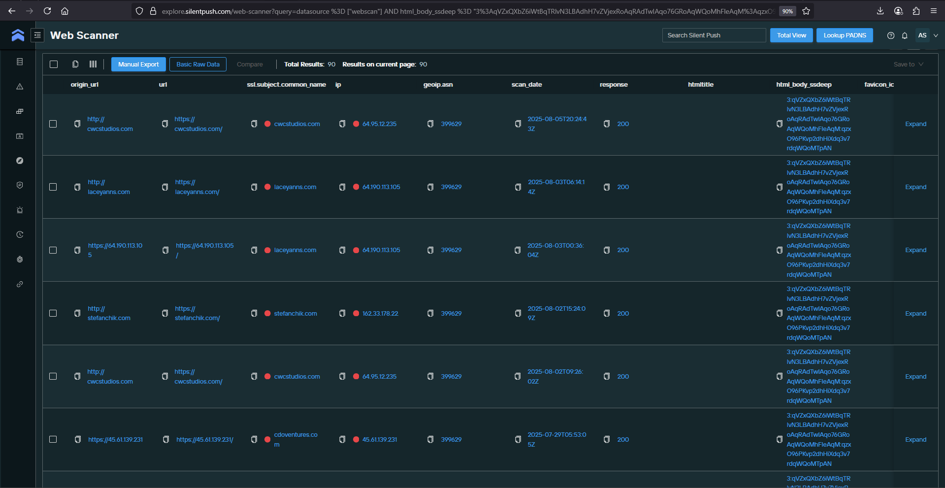 - https://explore.silentpush.com/web-scanner?query=datasource%20%3D%20%5B%22webscan%22%5D%20AND%20html_body_ssdeep%20%3D%20%223%3AqVZxQXbZ6iWtBqTRlvN3LBAdhH7vZVjexRoAqRAdTwIAqo76GRoAqWQoMhFIeAqM%3AqzxO96PKvp2dhHiXdq3v7rdqWQoMTpAN%22&sorting=scan_date%2Fdesc